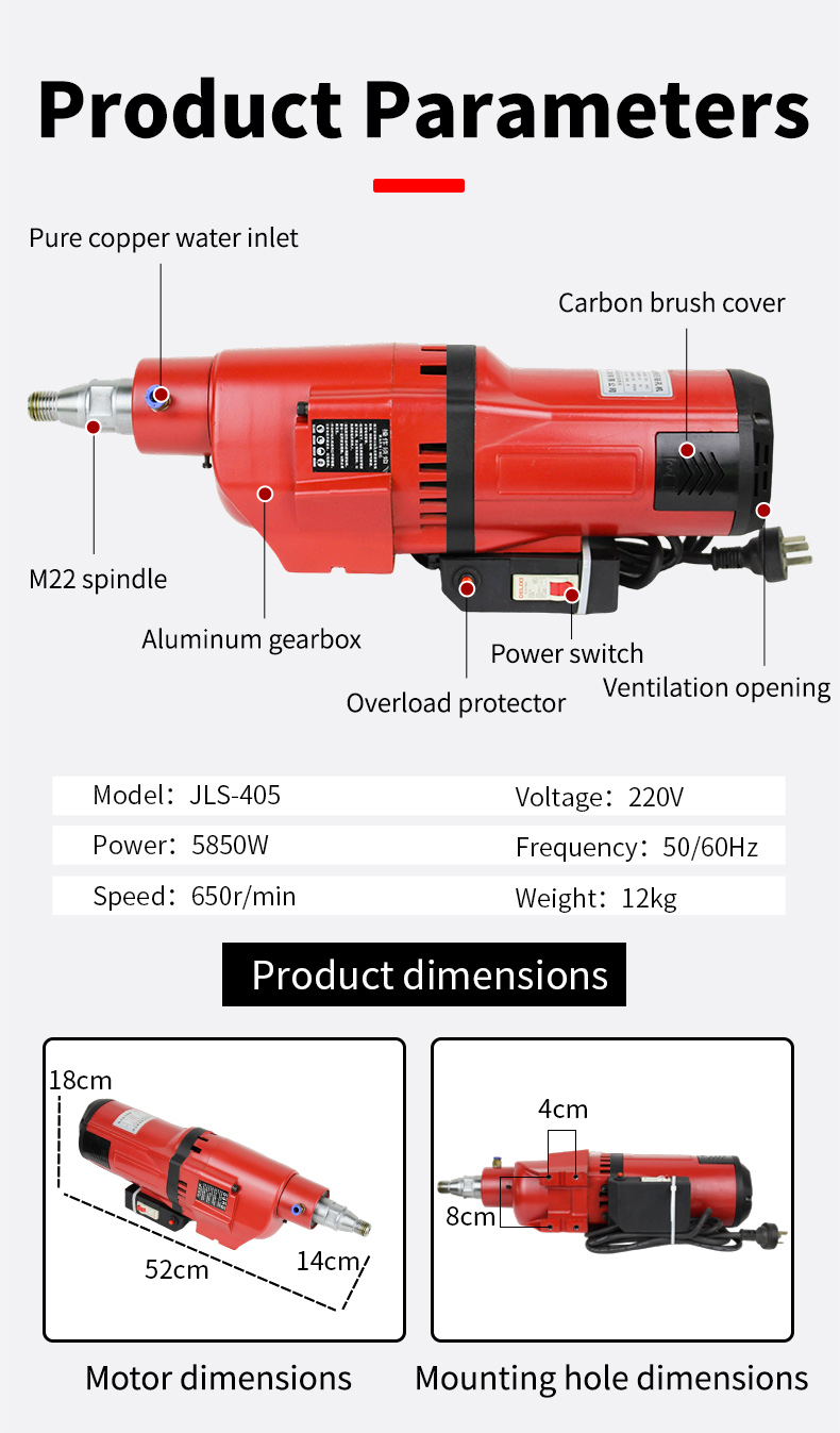 500/600mm 220V Industrial High Power Copper Wire Strong Torque Motor Diamond Coring Drilling Machine Spare Part